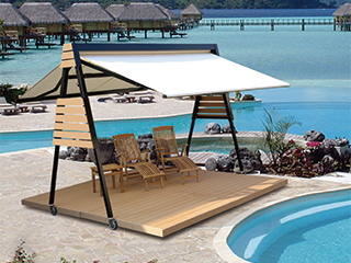 プラス」、高い強度と耐久性を持つ「スーパーマキシム」など、住宅向け・店舗向けそれぞれで豊富なラインナップが揃っています。その中でも、オーニングの用途が新たなステージに入ったことを感じさせるのが、2016年4月に発売された移動式オーニング「パルセイル」。キャスター付きで移動自在、その場ですぐに設置できるこの製品は、まさしく「動く日陰」そのものです。