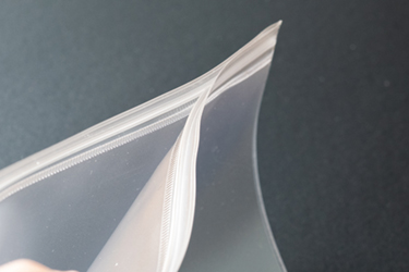 テープ部分も透明な塩ビでできているスライドファスナーは、バック内の視認性をより良くするために開発された製品。透明な生地材を使って高周波ウェルダー溶着することで、高い視認性と気密性を両立できます。袋を開けずに中身を確認できる用途で使われています。