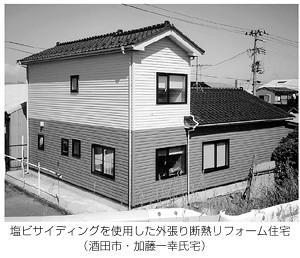 新時代の外壁材・塩ビサイディングを使った外張り断熱住宅がリフォームを中心に静かな広がりを見せています。耐久性に優れ、錆びたりひび割れたりすることがない塩ビサイディングが可能にした高断熱、高気密住宅の住み心地とは?。完成間もない山形県酒田市の外張り断熱リフォーム住宅にお邪魔して、関係者にお話をうかがいました。