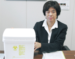 「いったん閉じられた容器は二度と開封することができません。一種のブラックボックスなので、私たちも中身を確認できない。このため実際に仕分け作業をしていただく病院関係者にきちっと理解してもらうのが何より大切で、はじめに分別表を使って分別の必要を説明するなどして信頼関係を確保しています」